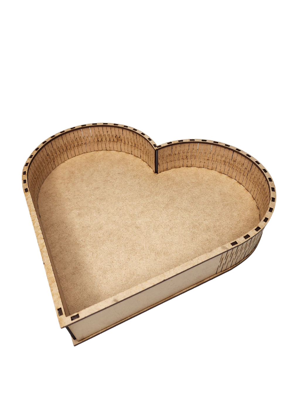 Bandeja em formato de coração MDF cru sem acabamento, está na cor natural da madeira, sem pintura ou verniz.